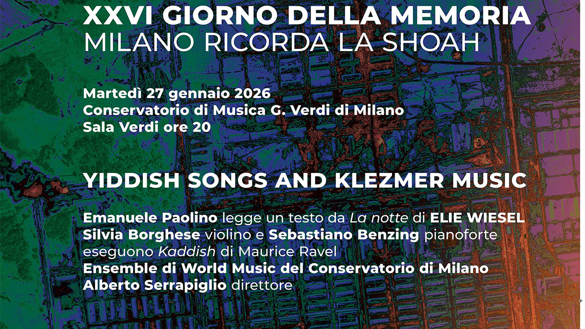 In occasione del XXVI Giorno della Memoria, la musica klezmer e yiddish diventa voce di ricordo, identità e resilienza. Il concerto propone un viaggio sonoro nelle tradizioni musicali dell’Europa orientale e della cultura ebraica, intrecciando melodie cariche di nostalgia, dolore e speranza eseguito dall’Ensemble di World Music del Conservatorio G.Verdi di Milano