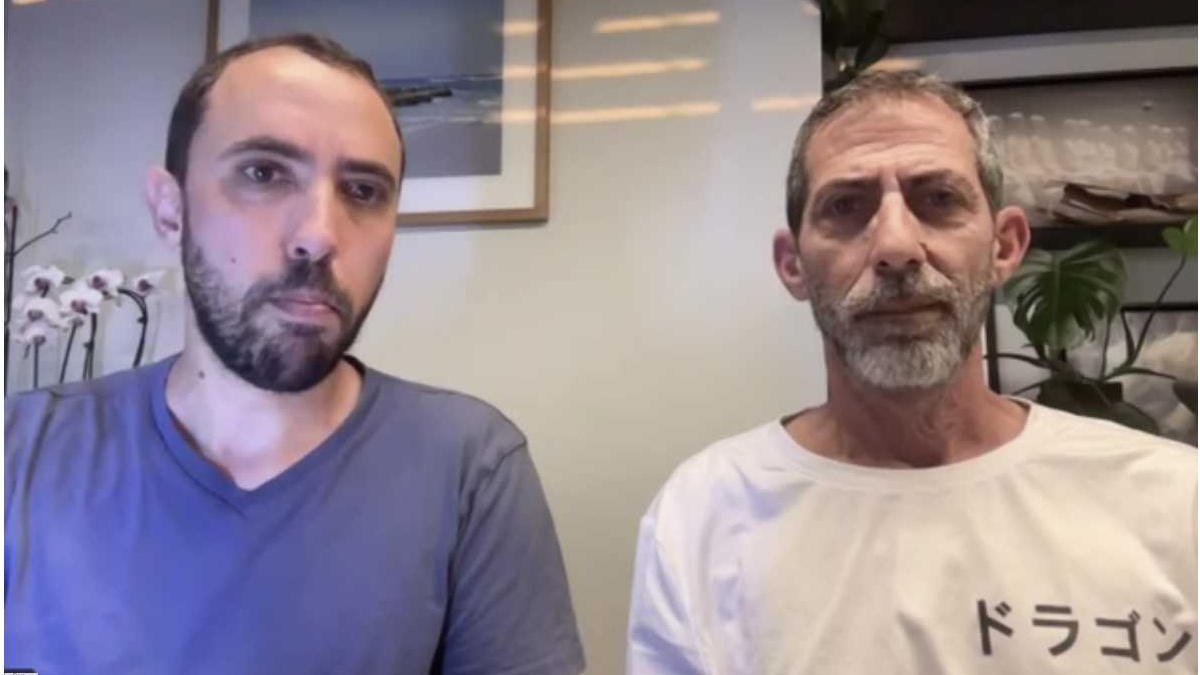 Foto in alto: L’ex ostaggio Tal Shoham, a sinistra, e Ilan Dalal, padre dell’ostaggio Guy Gilboa-Dalal, si rivolgono ai giornalisti su Zoom il 12 ottobre 2025.