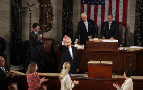 “Vice presidente Biden, portavoce Boehner, distinti senatori, membri della Casa Bianca, ospiti onorati, sono profondamente commosso da questo caloroso benvenuto, e sono profondamente onorato dal fatto che mi avete dato la possibilità di rivolgermi al Congresso una seconda volta. Vedo qui molti vecchi amici, e vedo anche molti nuovi amici di Israele, democratici e repubblicani allo stesso modo. Israele non ha un amico migliore dell’America, e l’America non ha un amico migliore di Israele. Siamo insieme per difendere la democrazia. Siamo insieme per difendere la pace. Siamo insieme per combattere il terrorismo. Congratulazioni, America. Congratulazioni, signor Presidente: avete preso Bin Laden. Una grande liberazione!
