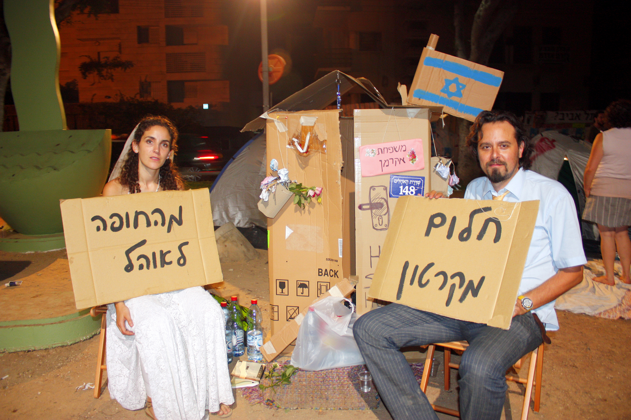 Già un anno fa il mio compagno Yonathan ed io trovavamo insopportabile il caro-affitti a Tel Aviv e meditavamo di protestare piantando tende in centro città. Il seme dunque era già là. Quando ai primi di luglio Dafni Leef ha aperto su Facebook una pagina di protesta ci siamo ritrovati nel suo salotto, vicino a Piazza Dizengoff. Una settimana dopo le prime tende di protesta sarebbero comparse sul Rothschild Boulevard. Ma eravamo pochi. Ognuno di noi ha allora mandato raffiche di mail agli amici, perché venissero a sostenerci. Così il movimento ha preso quota.