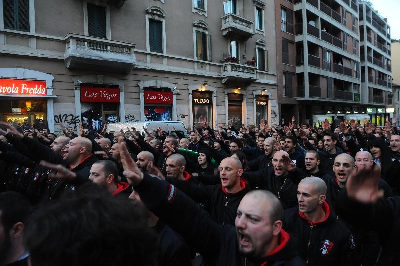Questo il comunicato ufficiale diramato dal Consiglio della Comunità Ebraica di Milano in merito alla manifestazione che il 29 aprile ha attraversato le vie di città studi partendo da piazzale Susa, per ricordare il 38esimo anniversario della morte di Sergio Ramelli (il militante del Fronte della Gioventù che venne ucciso il 29 aprile 1975) e quella di Enrico Pedenovi (l’esponente del MSI ucciso il 29 aprile dell’anno successivo): una vera e propria sfilata di croci celtiche, saluti romani, tamburi, a cui hanno partecipato circa 300 militanti dei vari gruppi dell’estrema destra milanese. Dietro lo striscione “Onore ai camerati caduti” erano ben visibili i simboli di Forza Nuova, Casapound e degli Hammerskin: quest’ultima organizzazione neofascista di ispirazione nazista rischia di veder chiudere la Skinhouse di Bollate, suo punto di ritrovo, per un’interrogazione parlamentare presentata al ministro dell’Interno Angelino Alfano da parte della deputata Eleonora Cimbro (Pd).