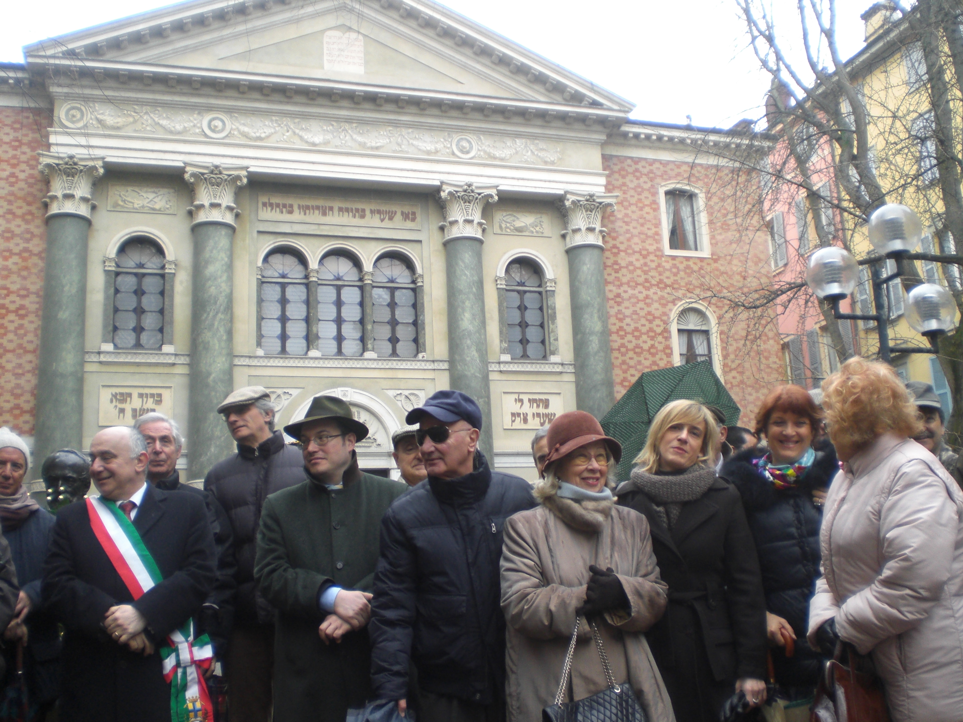 Il Sindaco, rav Goldstein ed altre personalità sono lì riunite per ricordare Mazzini, il cui busto si erge proprio di fronte alla Sinagoga (edificata tra il 1869 e il 1873). Come da altre parti, in queste occasioni ricompare quel mondo laico repubblicano e socialista, che ha profondamente inciso nella storia del paese, anche se non è mai stato maggioritario. Il Presidente dei Mazziniani è ovviamente anche Presidente di Italia-Israele, e le particolari fogge di barbe e di cappelli che si notano in questa occasione fanno veramente immaginare che alcuni dei presenti siano i diretti eredi degli uomini del Risorgimento.