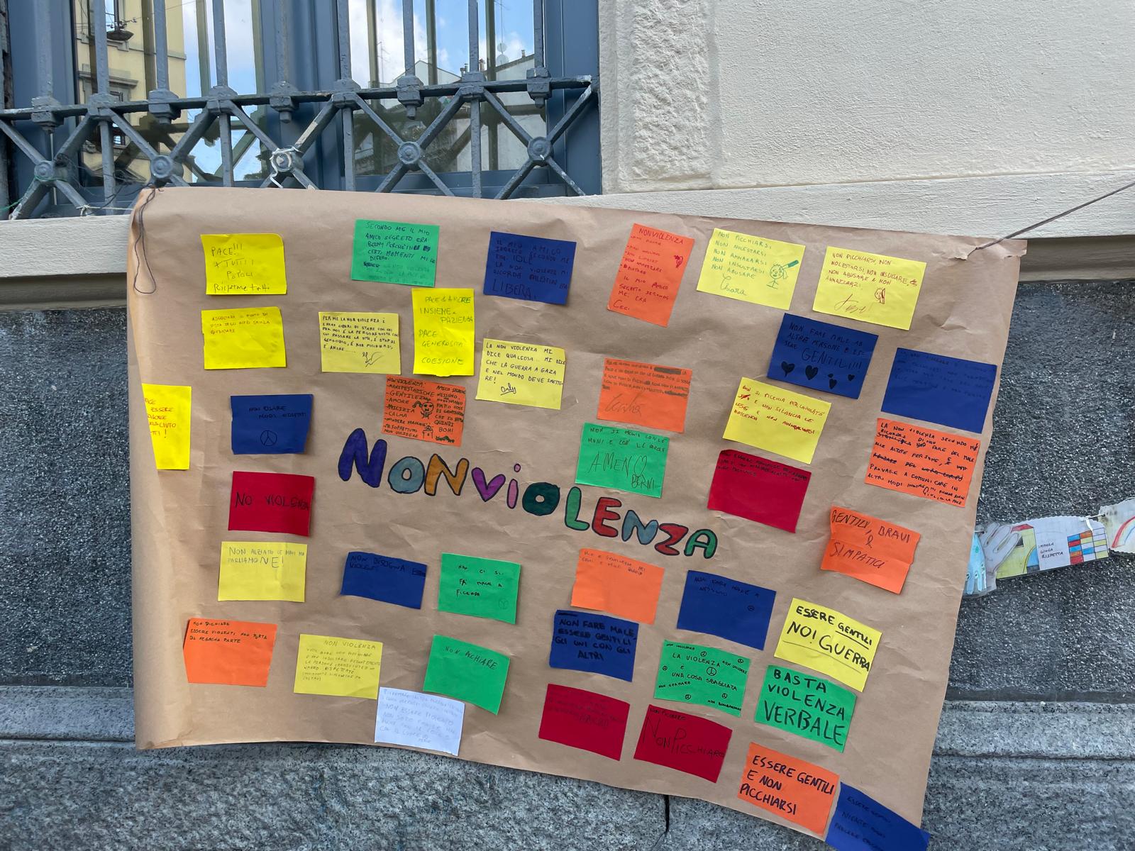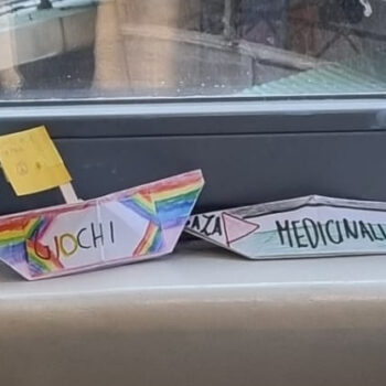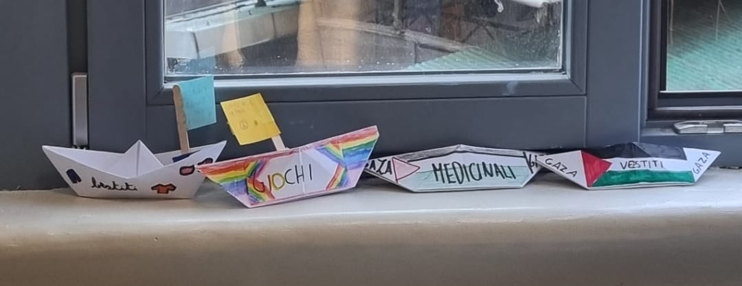 Ancora più sconcertante l’esperienza di D., padre di un bambino di 9 anni. «Dal momento che nella settimana dello sciopero del 3 ottobre in sostegno alla Flotilla cadeva anche la Settimana della non-violenza, nella classe di mio figlio sono state svolte attività in cui la flotilla e la causa palestinese sono state fatte passare come espressioni di lotta non violenta – ci racconta sconcertato -. Inoltre, i bambini hanno dovuto disegnare bandiere palestinesi e tagliare barchette colorate con ciò che ognuna portava: un frutto per il cibo, un maglione per i vestiti, ecc… Quello che è davvero inaccettabile è che abbiano dovuto fare manifesti proprio per lo sciopero, un’inziativa sindacale che niente ha a che fare con l’attività scolastica». In classe le maestre hanno anche cercato di parlare degli aspetti storici del conflitto, in modo però raffazzonato e confuso, facendo passare come “colpa” di Israele l’aver combattuto numerose guerre dal 1948 a oggi. Non solo: in altre classi della stessa scuola elementare hanno realizzato cartelli che sono stati appesi fuori dalla scuola, con bandiere palestinesi e addirittura “stop al genocidio”.