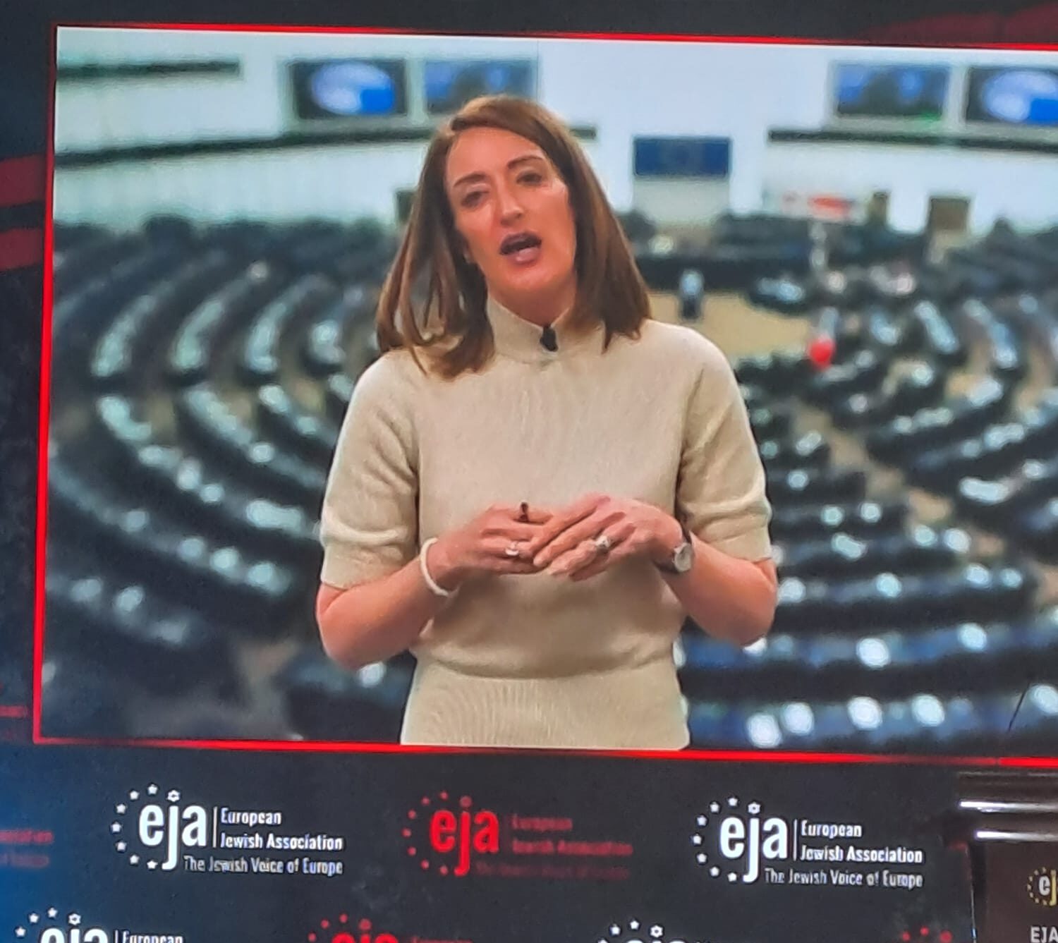 «Voglio essere molto chiara: non c’è posto per l’antisemitismo in Europa, né nelle nostre strade, né online, né sotto altre vesti. L’antisemitismo è un veleno e, come ogni veleno, non può essere tollerato. Come ogni veleno, deve essere sradicato». Queste le parole pronunciate dalla presidente del Parlamento Europeo Roberta Metsola in un video inviato in occasione della conferenza a cui non ha potuto partecipare in presenza. «L’Europa deve essere un luogo dove gli ebrei possano vivere apertamente, in sicurezza e senza paura – ha continuato -. dove indossare una kippah non sia un rischio, dove i bambini possano andare a scuola senza guardie armate ai cancelli, dove le famiglie possano celebrare le loro tradizioni in pace. Un luogo dove la vita ebraica fiorisca in ogni città, in ogni comunità del nostro continente».