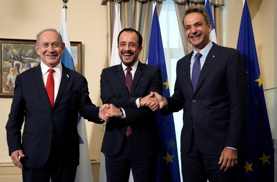 Il progetto ruoterebbe attorno a una brigata di pronto intervento di circa 2.500 uomini, articolata in componenti terrestri, navali e aeree. La ripartizione indicata è di 1.000 soldati israeliani, 1.000 greci e 500 ciprioti, con uno squadrone dell’aeronautica per ciascun Paese. La rete di basi e infrastrutture operative includerebbe Israele e Cipro, oltre alle isole greche di Rodi e Karpathos. Sul piano navale, Ynet riferisce che l’assetto ipotizzato includerebbe mezzi israeliani e greci. (Da sinistra il primo ministro israeliano Netanyahu, il presidente cipriota Christodoulides e il primo ministro greco Mitsotakis. Foto: X).