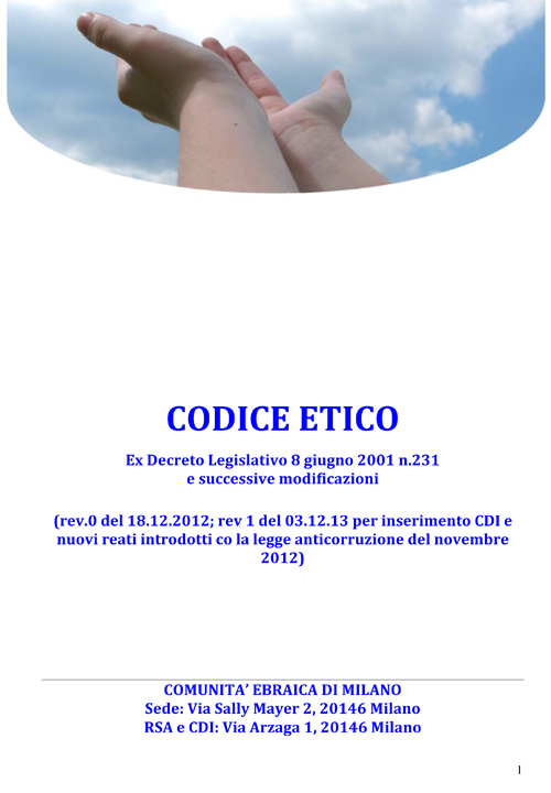 Per scaricare il PDF clicca qui CODICE ETICO COMUNITA’ EBRAICA – 231 Rev 1-1