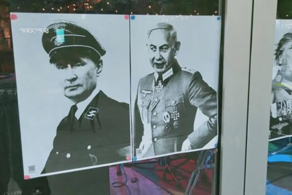 I cinque poster sono stati realizzati dal collettivo artistico Grow Up Art e ritraggono il premier israeliano Benjamin Netanyahu, il presidente americano Donald Trump, il suo vice JD Vance, il presidente russo Vladimir Putin e l’imprenditore Elon Musk tutti rappresentati con divise che richiamano l’estetica del Terzo Reich.