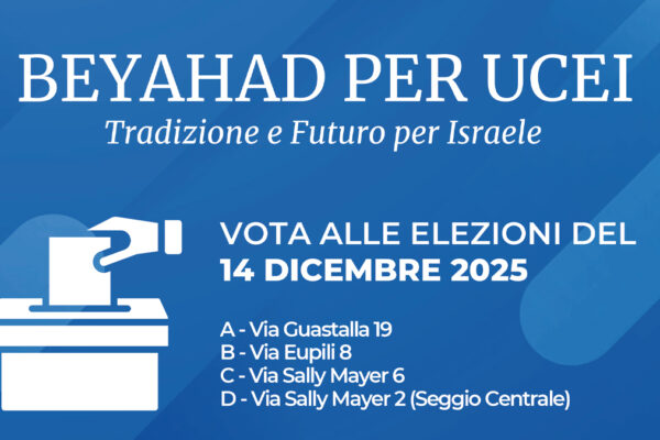 Beyahad è un progetto nato nel 2021 con l’obiettivo di gestire la Comunità in maniera pragmatica ed equilibrata, formando delle ampie intese. Fedele ai suoi intenti, Beyahad ha governato la Comunità per l’intero mandato, sotto la guida del Presidente Walker Meghnagi che ha saputo formare un’ampia coalizione con la lista di minoranza e avviare progetti importantissimi, quali il Polo Museale Ebraico, il rafforzamento della sicurezza a seguito degli eventi del 7 Ottobre, il rifacimento delle palestre e dell’Aula Magna, e tanto altro.