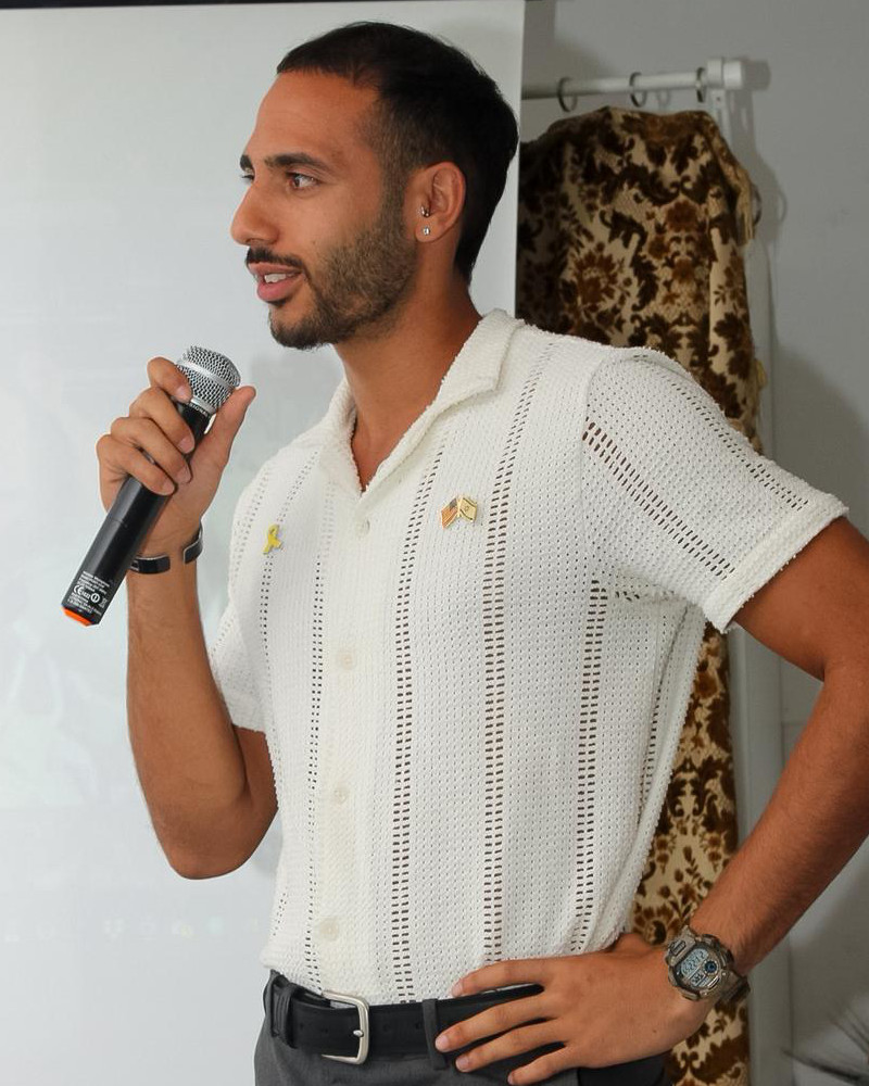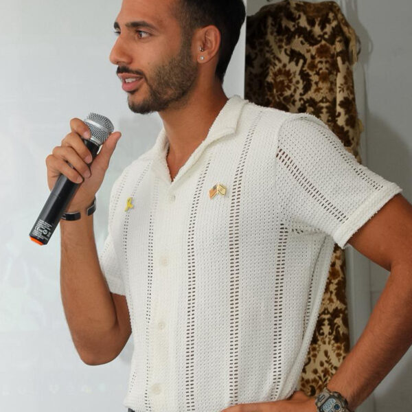 Una serata in comunità in cui i giornalisti invitati hanno potuto ascoltare i racconti dal vivo di Ilan Dalal, padre di Guy Gilboa‑Dalal, giovane israeliano ancora ostaggio a Gaza, e Adi Karni, soldato dell’esercito israeliano che ha combattuto sia nel nord, contro Hezbollah, sia nel sud, nella Striscia di Gaza. (Credit foto: laramou_photography)