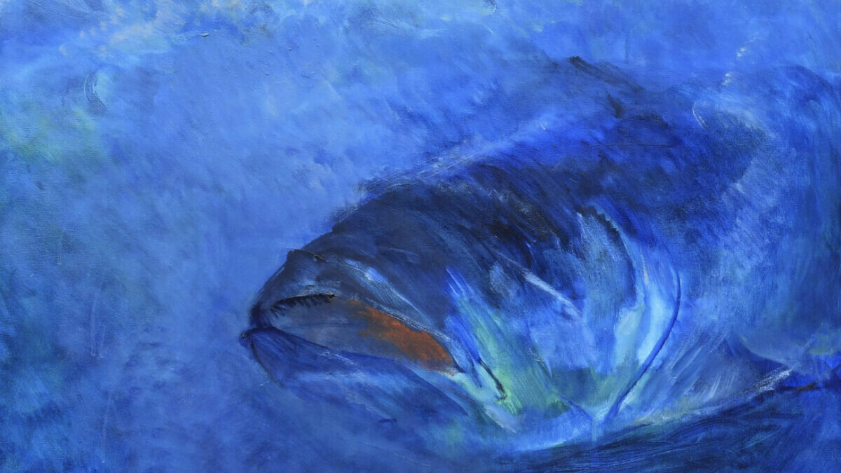 Meravigliosi blu ipnotici, magistralmente armonizzati tra loro, pervadono la tela de La Nave di Giona. Guardandolo meglio vedremo che seppur non ci sia una modificazione del racconto, a cambiare è il punto di vista della narrazione. “Questo pezzo risale al periodo in cui ho lavorato sul libro di Giona. L’idea centrale è questo punto di vista rovesciato, dal basso verso l’alto, di ciò che vede la balena, mentre attende che Giona venga buttato giù dalla nave per un atto di solidarietà di Giona nei confronti dei naviganti. Lui dice la colpa è sua se loro sono stati invasi dalla tempesta, ma dice anche che se lo buttano giù è possibile che loro si salvino”. Si vede chiaramente la balena, ma la nave è offuscata, s’intravede appena, da sotto. Per quale motivo c’è questa prospettiva rovesciata?I cambiamenti del punto di vista, del modo di vedere i differenti fenomeni, analizzandolo dal lato ebraico, è caratteristico del dibattito tra i chachamim, della controversia talmudica, dove ciascuno interpreta lo stesso versetto da punti di vista spostati. Questo modo di spostare la visuale aiuta a capire meglio le cose e anche la sua indeterminazione, cioè che l’interpretazione può essere moltiplicata, tante interpretazioni che conferiscono al versetto interpretato una lontananza che la rende in parte decifrata e in parte indecifrabile, perché se le interpretazioni sono tante, evidentemente l’oggetto sfugge verso una sua essenza imprendibile”.