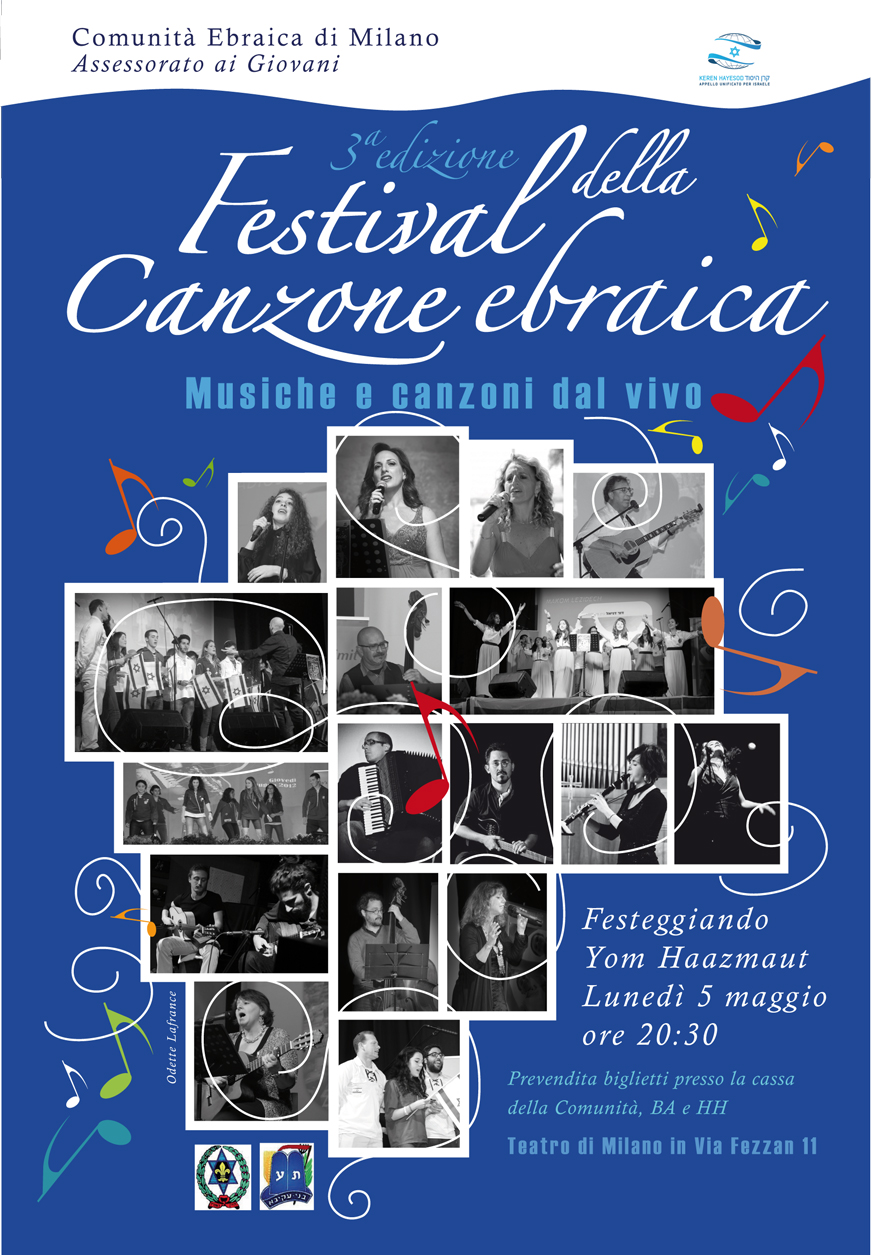 In occasione del 66mo anniversario dello Stato di Israele, la Comunità Ebraica di Milano ed il Keren Hayesod vi invitano alla terza edizione del Festival della Canzone Ebraica, un evento ideato tre anni fa dall’Assessorato ai Giovani per sostenere i Movimenti Giovanili.