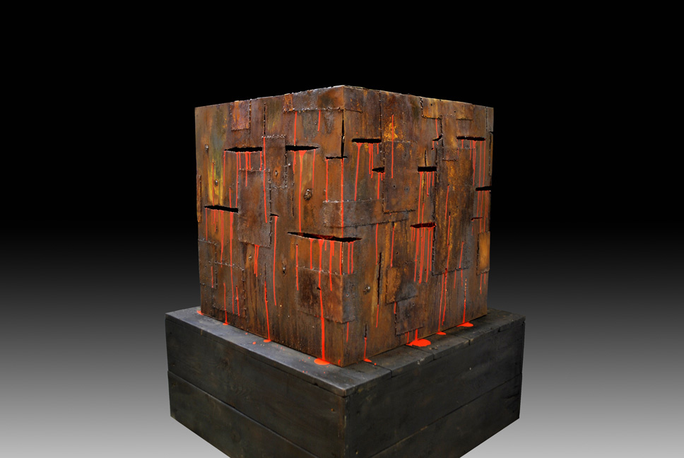 Un cubo arrugginito e rattoppato, con tante fessure da cui cola sangue (vernice rossa): al suo interno, circondato da filo spinato, papa Pio XII seduto sul suo trono, come ad assistere impotente al dramma dell’Olocausto. Ombre spettrali, un’atmosfera livida e claustrofobica. A fare da sottofondo, la frase pronunciata da Mussolini «la nostra coscienza è assolutamente tranquilla!» e il proclama radio del 24 dicembre 1942 di papa Pacelli, insieme ad altre voci e suoni che ricordano quel dramma, emessi da due altoparlanti nascosti all’interno della scatola metallica e che richiamano l’attenzione dello spettatore, invitandolo a guardare attraverso le fessure.