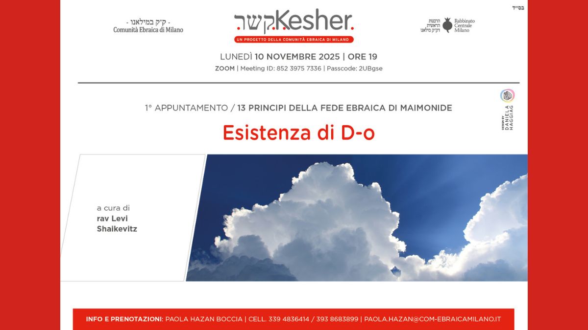Lunedì 10 novembre 2025 alle ore 19:00 si tiene il I° appuntamento del CICLO 13 principi della fede ebraica di Maimonide: Esistenza di D-o.