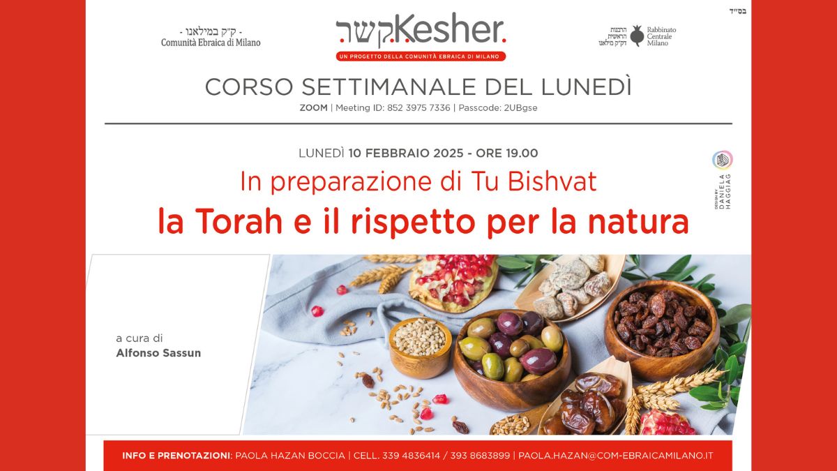 Lunedì 10 febbraio 2025 alle ore 19:00 ha luogo l’appuntamento del corso di ebraismo online, intitolato In preparazione di Tu Bishvat, la Torah e il rispetto per la natura