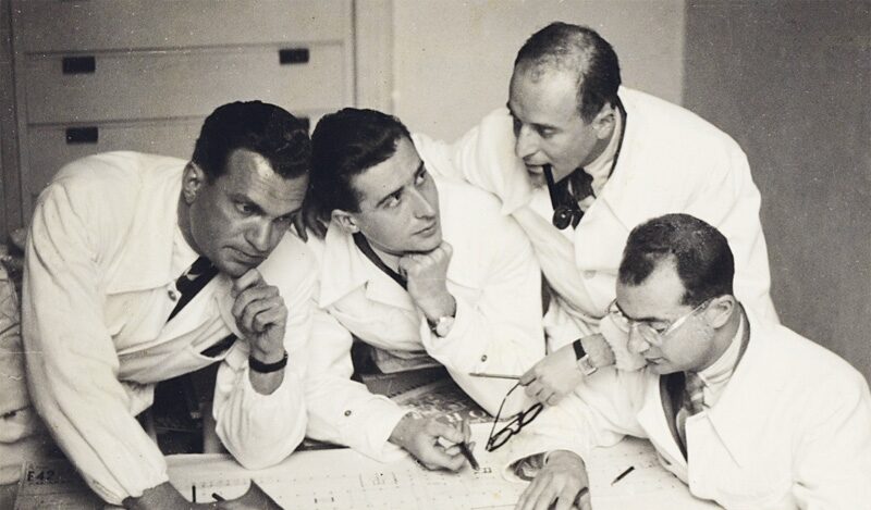 Alessandro Rimini subì una storia fatta di persecuzione, fughe e isolamento, riuscendo tuttavia a sfuggire alla deportazione in Germania. Nel Dopoguerra, il suo destino fu aggravato da problemi di vista e salute agli occhi che ne limiteranno l’attività, impedendogli di disegnare. «Anche il suo capolavoro di San Babila, la Torre Snia Viscosa, il primo vero grattacielo moderno di Milano, venne messo in secondo piano», sottolinea Dulio. Altri architetti ebrei, invece, durante la Shoah trovarono rifugio oltre confine. «La Svizzera divenne, fra il 1942 e il 1945, per Rogers, i fratelli Latis e molti altri, un vero laboratorio per il futuro dell’Italia – prosegue Capitanucci -. Gustavo Latis, inizialmente impegnato come scenografo al Teatro alla Scala, trovò proprio durante l’esilio la vocazione per l’architettura, anche grazie ai campi universitari indetti con l’intercedere di Gustavo Colonnetti, rettore del Politecnico di Torino e tra i primi a fuoriuscire dall’Italia. Nelle università di Losanna e Zurigo, i Latis e Rogers, che vi insegnava, dialogarono con ingegneri e numerosi intellettuali e futuri leader politici, fra cui Amintore Fanfani, Adriano Olivetti e i fratelli Risi». Nel frattempo, a Milano, lo Studio BBPR viveva la sua ora più buia. Banfi e Barbiano di Belgiojoso furono arrestati nel 1944 e deportati a Gusen in quanto antifascisti. Banfi morì nel lager nel 1945, mentre Belgiojoso riuscì a tornare. Enrico Peressutti, invece, pur impegnato nella lotta di Liberazione, non fu arrestato. Si scelse di mantenere intatto l’acronimo originale «conservando la ‘R’ di Rogers e la seconda ‘B’ di Banfi come una precisa dichiarazione politica e ideologica di valori sociali».