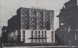 Immagini: lo Smeraldo di Alessandro Rimini; il condominio dei Latis in via Lanzone; la Torre Velasca, uno dei simboli di Milano, realizzata nel 1955 su disegno dello Studio BBPR; (in alto) gli architetti dello studio BBPR fondato nel 1932 da Gian Luigi Banfi, Lodovico Barbiano di Belgiojoso, Enrico Peressutti ed Ernesto Nathan Rogers.