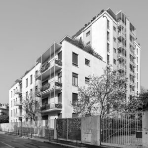 Parallelamente, i fratelli Vito e Gustavo Latis divennero protagonisti del Movimento Studi Architettura, nato per promuovere il rinnovamento architettonico nel dopoguerra, in dialogo con la Triennale. Presero parte alla ricostruzione industriale e terziaria ispirandosi a principi di democrazia e funzionalità, progettando quartieri come quello per le industrie Cantoni a Cesate e partecipando a esperimenti d’avanguardia fra cui il quartiere QT8 di Milano, ideato da Piero Bottoni. Il loro lavoro si estese ai quartieri Arrar de Sier, zona San Siro, Mangiagalli e alle aree tra piazza San Babila e via Larga. Insieme a professionisti come Ignazio Gardella e Paolo Caccia Dominioni, lo Studio Latis definì quello che oggi conosciamo come il “condominio milanese”, emblema della residenza alto-borghese della Ricostruzione. Fra i progetti più emblematici si contano il condominio di via Lanzone, l’edificio per abitazioni, uffici e commercio in via Turati e l’edificio di via Monte Santo. Animati da una visione che permise loro di reinserirsi fra i pilastri dell’evoluzione urbana milanese, i Latis contribuirono a segnare il passaggio verso la Milano contemporanea.