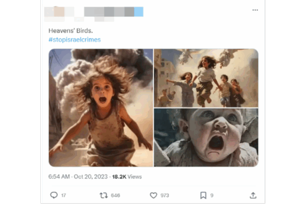 L’IA è stata utilizzata da Hamas in diversi modi: pubblicando dichiarazioni ideologiche riscritte nel linguaggio dell’attivista occidentale medio; con la traduzione istantanea dei loro contenuti in più lingue; e con slogan e immagini amplificate sui social media prima che venissero fuori notizie verificate.