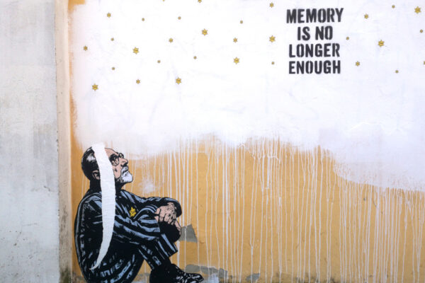 “Memory is no longer enough” è il titolo della nuova opera dell’artista realizzata su ciò che resta delle opere dedicate nel 2025 ai sopravvissuti della Shoah Liliana Segre, Edith Bruck e Sami Modiano, ripetutamente colpite da azioni antisemiti. Il nuovo intervento nasce come risposta diretta a questo clima antiebraico dilagante.
