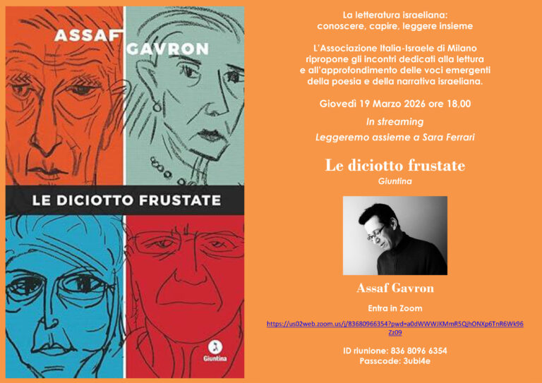 L’Associazione Italia-Israele di Milano ripropone gli incontri dedicati alla lettura e all’approfondimento delle voci emergenti della poesia e della narrativa israeliana.