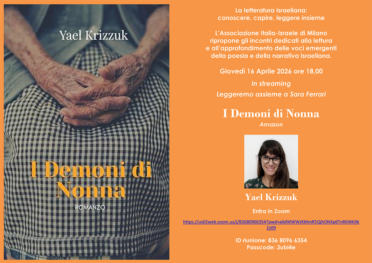 L’Associazione Italia-Israele di Milano ripropone gli incontri dedicati alla lettura e all’approfondimento delle voci emergenti della poesia e della narrativa israeliana.