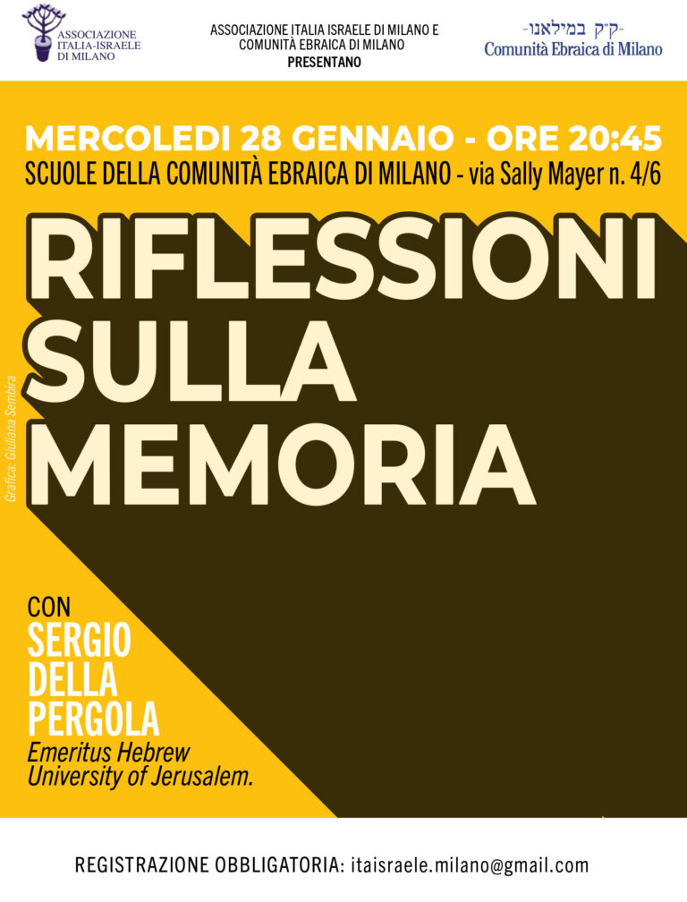 L’Associazione Italia Israele di Milano e la Comunità Ebraica di Milanohanno il vivo piacere d’invitare all’incontro con Sergio Della Pergola, Emeritus dell’Università Ebraica di Gerusalemme.