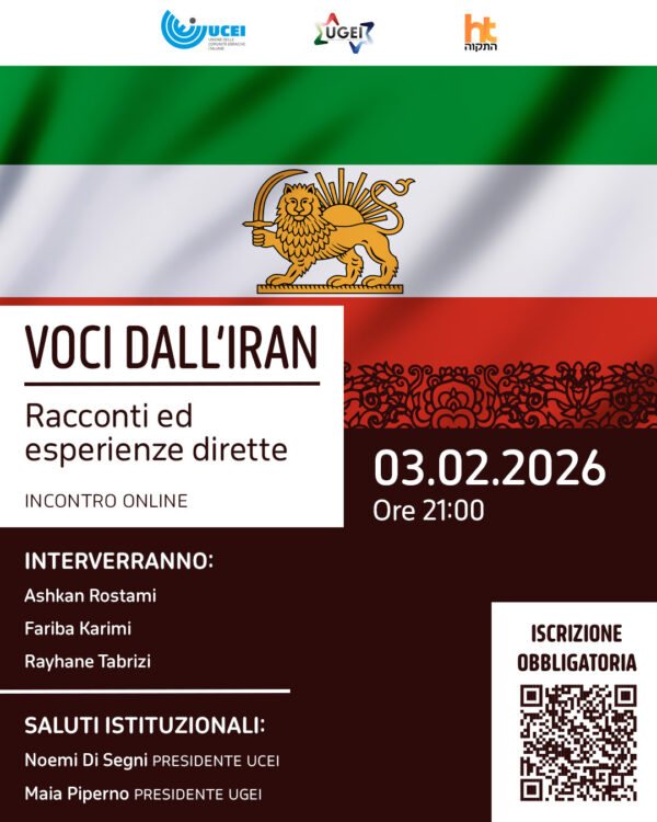 Voci dall’Iran: racconti ed esperienze dirette è il titolo dell’incontro online promosso per martedì 3 febbraio alle ore 21:00, realizzato in collaborazione tra UCEI, UGEI e Hatikwa.
