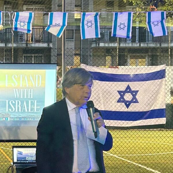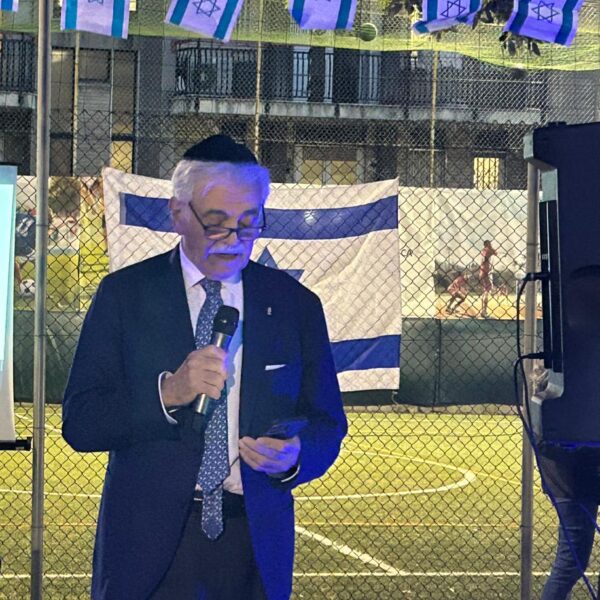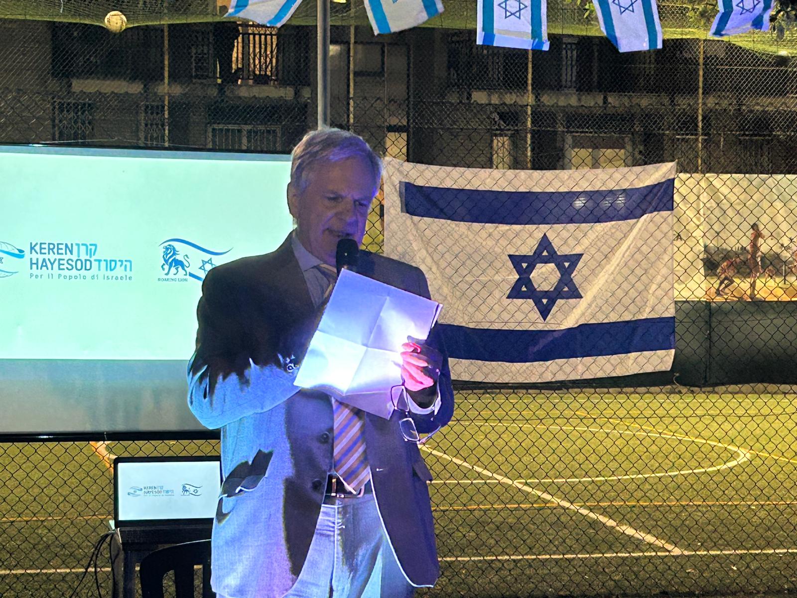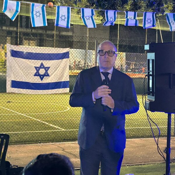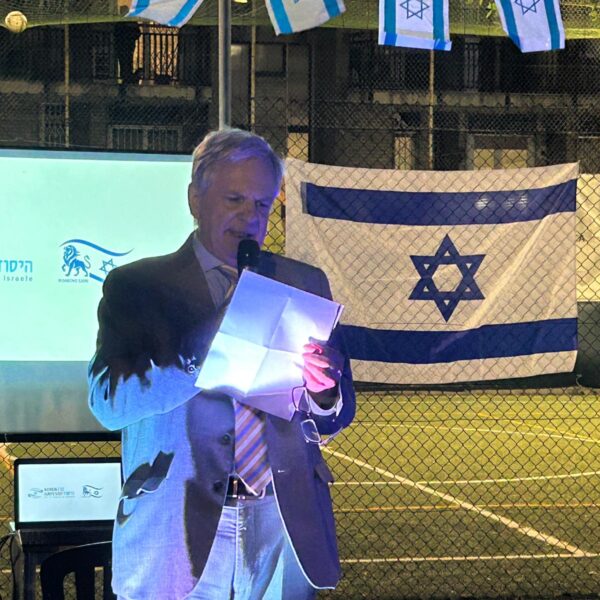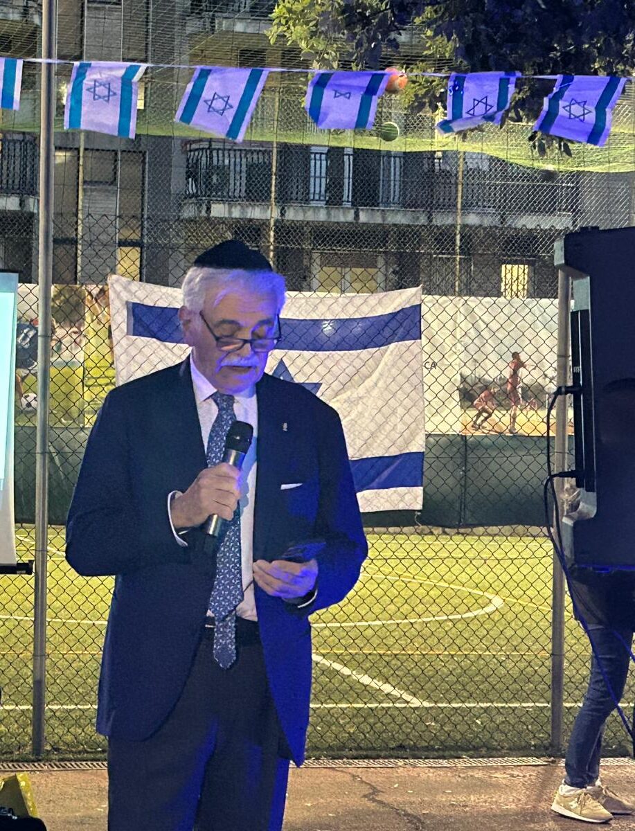 La cerimonia è iniziata con l’alzabandiera delle bandiere italiana e israeliana, accompagnata dall’intonazione degli inni nazionali di entrambi i paesi. Il primo intervento è stato quello del vicepresidente UCEI Milo Hasbani, il quale ha ricordato che “un anno fa abbiamo pregato per la liberazione degli ultimi ostaggi, e anche la restituzione di quelli che purtroppo non ce l’hanno fatta”. Sebbene sia i vivi sia i morti siano tornati a casa, “quest’anno purtroppo parliamo ancora di guerra su più fronti, quello iraniano e quello libanese”. Ha ricordato che Israele sta lottando per liberare questi paesi, e “deve ridare il Libano ai libanesi e l’Iran agli iraniani che credono ancora nelle democrazie”.