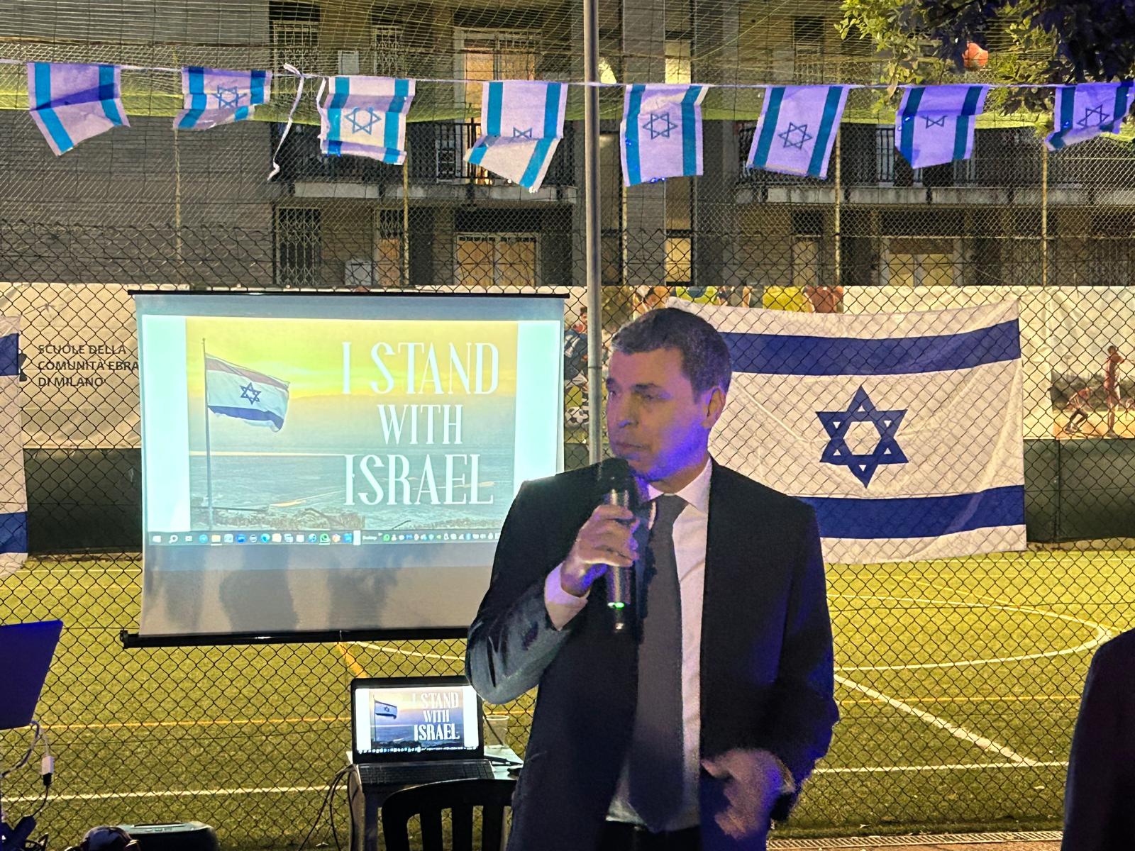 Il viceambasciatore d’Israele in Italia Lior Keinan è giunto da Roma per ringraziare la comunità ebraica milanese per essere rimasta vicina a Israele in un periodo difficile come questo. In seguito, è stato proiettato un video del Keren Hayesod sulle loro attività per fare fronte alla situazione critica in Israele, illustrate anche dal presidente Victor Massiah che ha raccontato come hanno visitato ospedali e kibbutz colpiti. Proprio per il periodo che stiamo vivendo, oggi festeggiare Yom HaAtzmaut “è un atto di resistenza morale”, ha affermato il presidente del KKL Italia Andrea Alcalay.