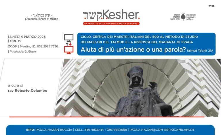 Lunedì 9 marzo ore 19.00 si tiene l’appuntamento intitolato: Aiuta più un’azione o una parola? (Talmud Ta’anit 21A)