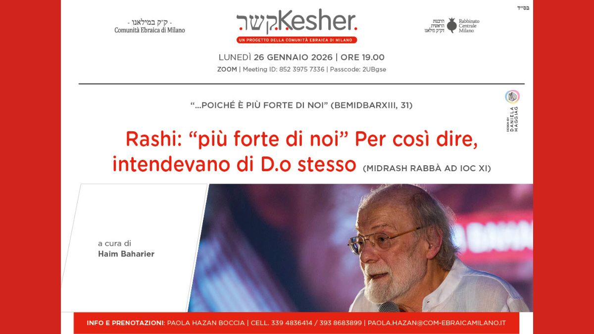 L’evento organizzato da Kesher sotto la guida di Paola Hazan Boccia è visibile in diretta streaming su zoom e successivamente disponibile per la libera visione sui nostri social.