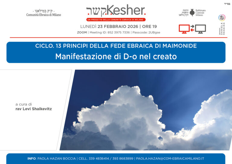 Lunedì 23 febbraio ore 19.00 si tiene il III appuntamento sui 13 principi della fede ebraica di Maimonide: