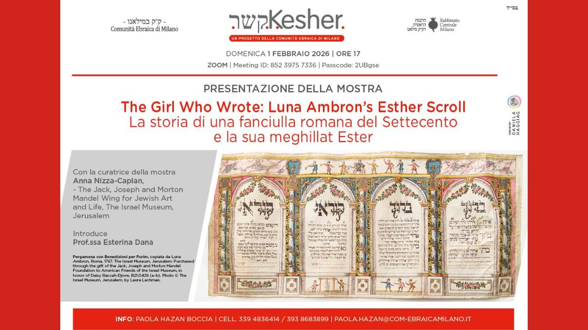 L’evento organizzato da Kesher sotto la guida di Paola Hazan Boccia è visibile in diretta streaming su zoom e successivamente disponibile per la libera visione sui nostri social.