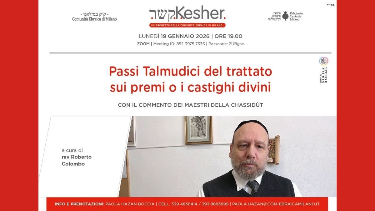 “Passi Talmudici del trattato sui premi o i castighi divini”: lunedì 19 gennaio conferenza su zoom